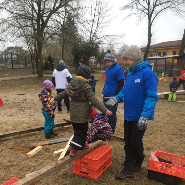 Unsere angehenden Erzieherinnen und Erzieher in der berufsbegleitenden Ausbildung führten einen Bewegungs- und Sinnestag mit den Kindern unserer Kita Arche durch. Hier konnten die Kinder bauen, konstruieren, klettern, springen, forschen und ausprobieren und wurden dabei von unseren Schüler/innen begleitet. Dieser Vormittag bildete die „Überprüfung der fachpraktischen Fähigkeiten“ unserer Erzieher/innen zum Abschluss der Ausbildung.