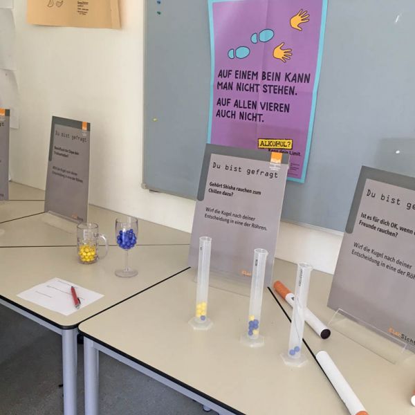 Unterricht ganz praktisch und herausfordernd – eben kompetenzorientiert: unsere angehenden Erzieher/innen bearbeiten im 2. Ausbildungsjahr Themen wie vorurteilsbewusste, geschlechtsspezifische und inklusive Arbeit. Neben der Auseinandersetzung mit Fachliteratur und Hospitationen in Einrichtungen im Themenfeld Soziale Arbeit führen die Schüler/innen Workshops zu ausgewählten Schwerpunkten durch. Hier ein paar Einblicke in die Workshops zu den Themen Sucht und Prävention, inklusive Arbeit und Pädagogik der Vielfalt und geschlechtsbewusste Arbeit. Außer der fachtheoretischen Auseinandersetzung erlangen die Schüler/innen Kompetenzen in Bereichen der Moderation, Methodenvielfalt, Planung und Organisation usw.