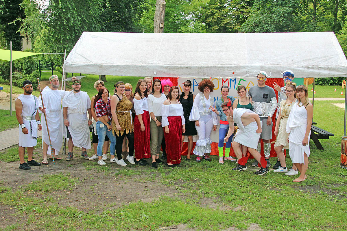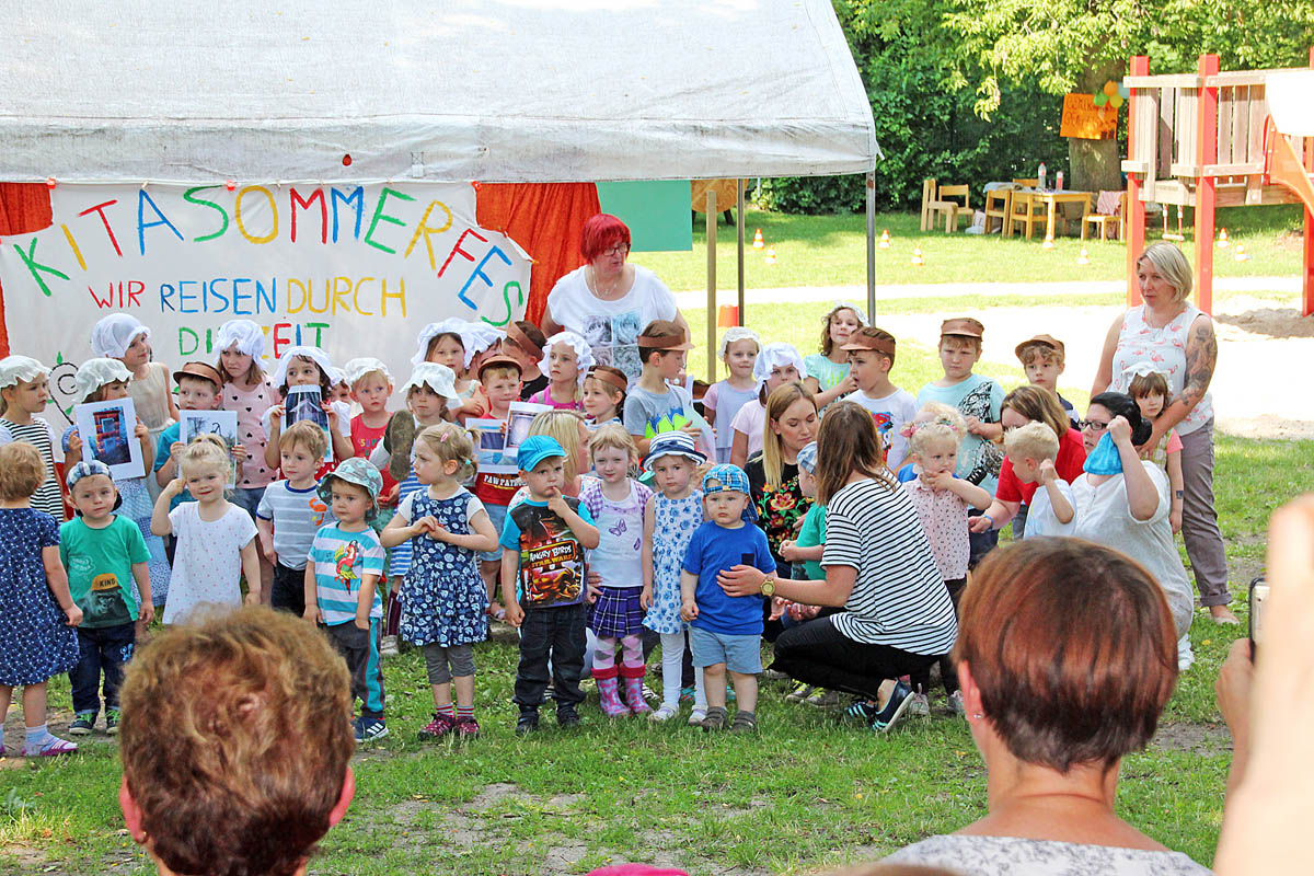 Am 7. Juli 2017 fand das große Kita – Sommerfest unter dem Motto: "Wir reisen durch die Zeit" statt. Eine Klasse angehender Erzieher/innen stattete das Fest mit vielen Mitmach-Stationen aus. Sie lernten hierbei ihr Angebot an den Bedürfnissen der Kinder auzurichten. Besonders gut kamen die Verkleidungskünste unserer Schüler an.
