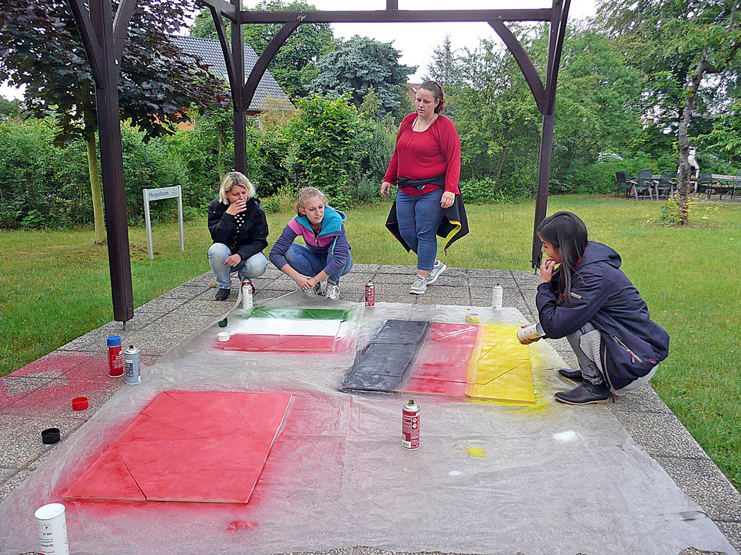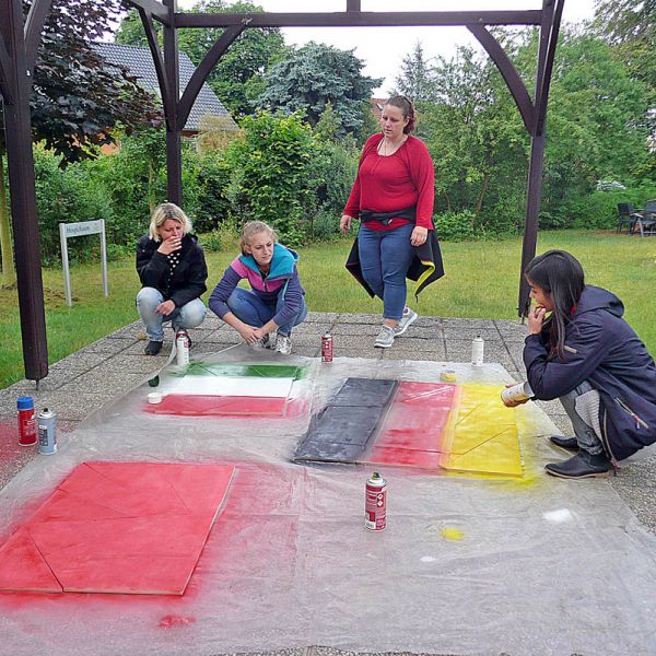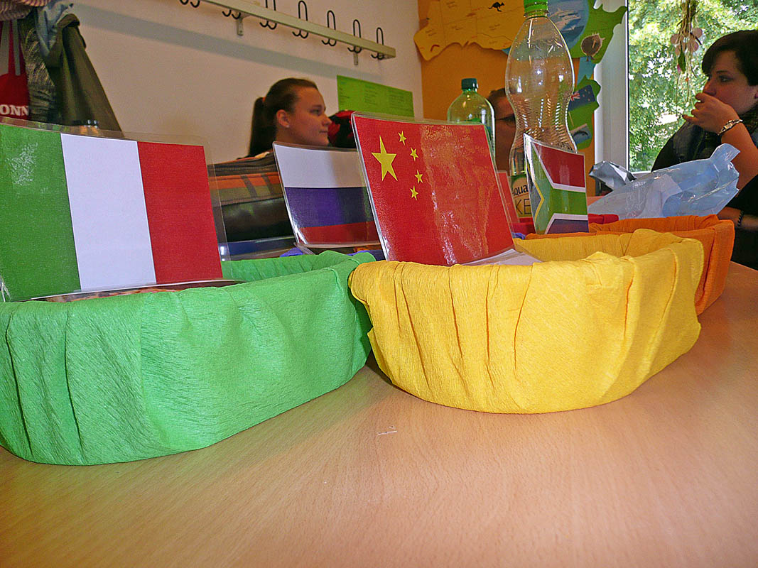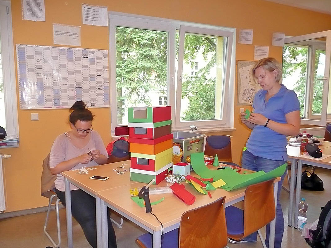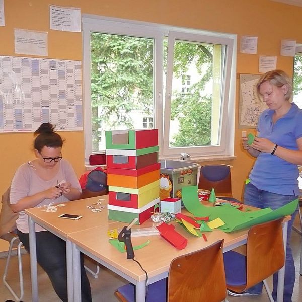 Die Schülerinnen und Schüler im ersten Ausbildungsjahr bereiten Spielstationen für das Sommerfest am 1. Juli 2016 unserer Kita „Arche“ vor. Das Motto in diesem Jahr ist „Reise um die Welt“. Neben kulinarischen Besonderheiten aus aller Welt wird es u. a. eine Fotowand, ein Riesenpuzzle, eine Fußball Mini-EM sowie Musik und Tänze mit Melodien aus fernen Ländern zu bestaunen geben. Für die Kinder von 0-3 Jahren wurden Suchkisten und Fühlboxen vorbereitet. Wir wünschen viel Freude dabei.