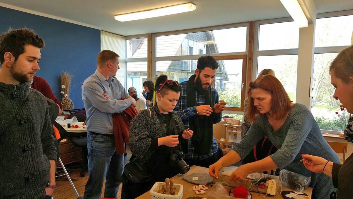 „Abkucken erlaubt!“ Die Schülerinnen und Schüler des ersten Ausbildungsjahres reisten vom 04.04. - 06.04.2016 zum Erfahrungsaustausch nach Mecklenburg-Vorpommern. Die SOS-Dorfgemeinschaft Hohenwieden gab viele Einblicke in die Textilwerkstatt z.B. beim Trockenfilzen und Weben. Auch im Haus an der Trebel in Grimmen (pommerscher diakonieverein e.V.) waren wir herzlich willkommen. Hier leben Kinder, Jugendliche und Erwachsene Menschen mit Behinderung. Der Besuch am Strand in Dierhagen durfte natürlich auch nicht fehlen.