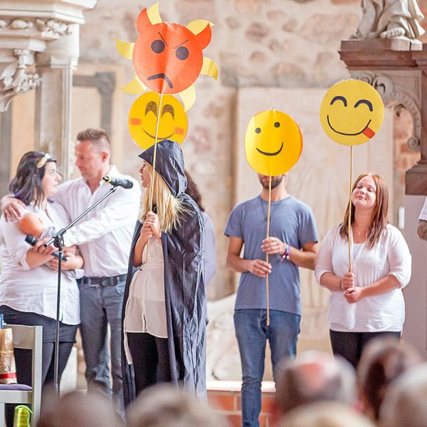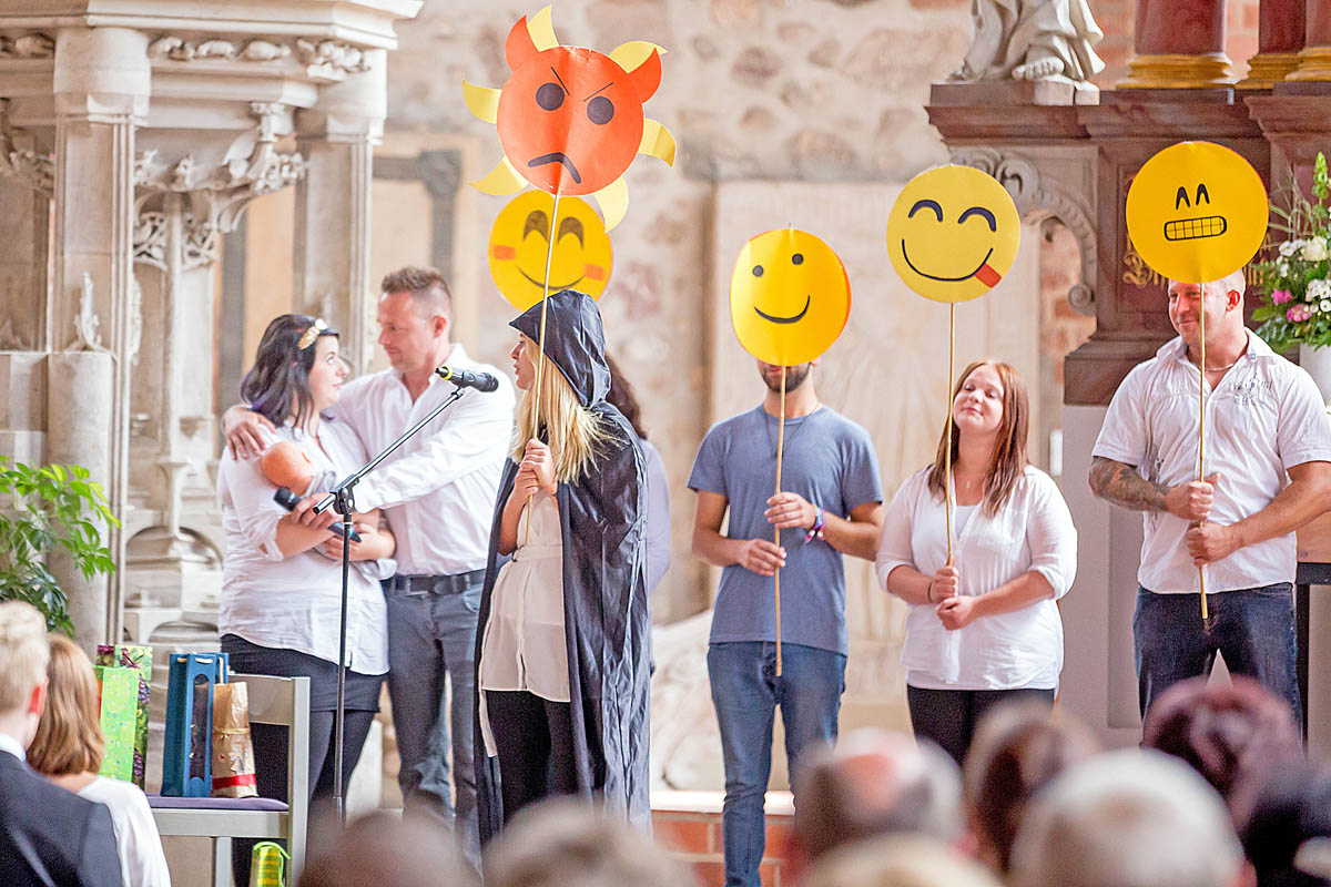 Die feierliche Zeugnisübergabe am 19.07.2016 im St. Marien Dom Fürstenwalde wurde von den Schülerinnen und Schülern des ersten Ausbildungsjahres gestaltet. Sie zeigten uns eine sehr gelungene Darstellung des Märchens „Dornröschen“. Eine Fee hatte das Nachsehen, weil Sie nicht zur „WhatsApp Gruppe“ gehörte und wurde so nicht zur Taufe der Königstochter eingeladen. Aus diesem Missverständnis wurde der bekannte Fluch. Dornröschen hatte aber - wie unsere Absolventen - zum Ende doch aus vielen Angeboten die Wahl. Sie entschied sich für einen festen Arbeitgeber und eine sichere Zukunft. Die Klasse HEP 31/32 bewies auch hier ihr musikalisches Talent.