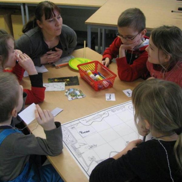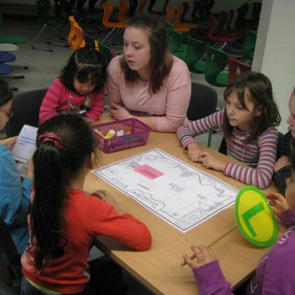 Am 17.2.2017 unterstützen die Schüler im zweiten Ausbildungsjahr die Lehrkräfte der Sigmund Jähn Grundschule, den Übergang von der Kita in die Grundschule zu gestalten. Sie halfen den künftigen Schulanfängern dabei, mit einer bunten Fahrkarte und einem Buchstaben in den "ABC-Bus" einzusteigen und an 8 Haltestellen 8 Buchstaben kennenzulernen. Sie durchforsteten die Schule gemeinsam nach Wörtern, die mit ihrem Haltestellen-Buchstaben beginnen, bastelten eine Landkarte und präsentierten am Ende ihre „Reise“ vor der Gruppe. Das war gar nicht so einfach!