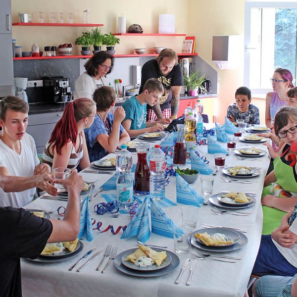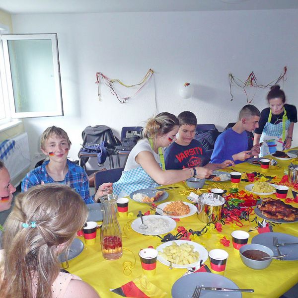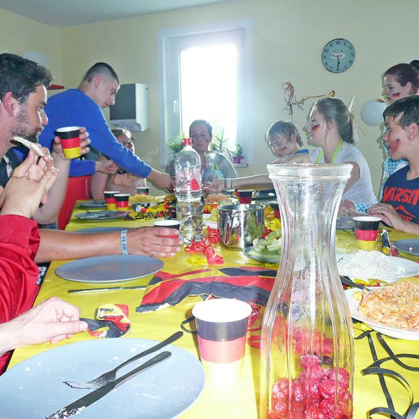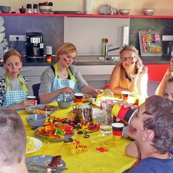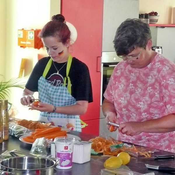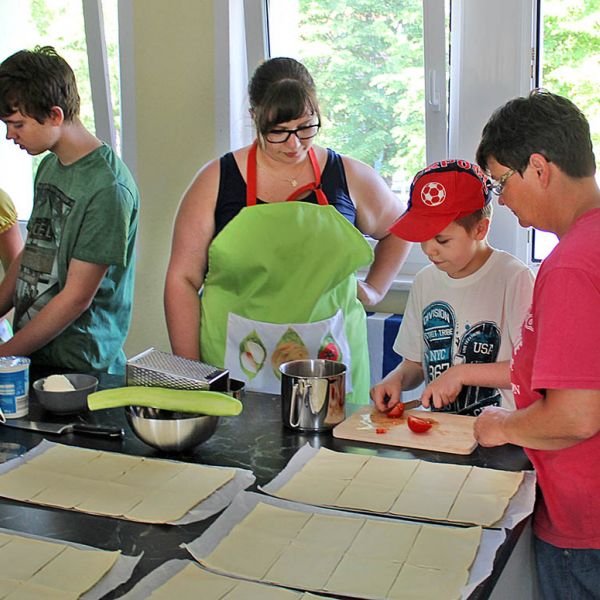 Der „Tag der Begegnung“ wird traditionell für die Einstimmung auf die nächste Praxisphase durchgeführt. Ab September starten die Schülerinnen und Schüler der Sozialassistentenklasse in den nächsten praktischen Ausbildungsabschnitt. Dort werden Sie mit Kindern, Jugendlichen oder Erwachsenen mit Behinderungen Erfahrungen sammeln. Sie haben im Unterricht viel über verschiedene Behinderungsarten gelernt. Am Tag der Begegnung konnten wir Kinder und Jugendliche mit Behinderungen aus dem Haus „Bethesda“ einladen, um mit uns gemeinsam ein Kochduell zu veranstalten. Natürlich wurde danach alles selbst verzehrt!