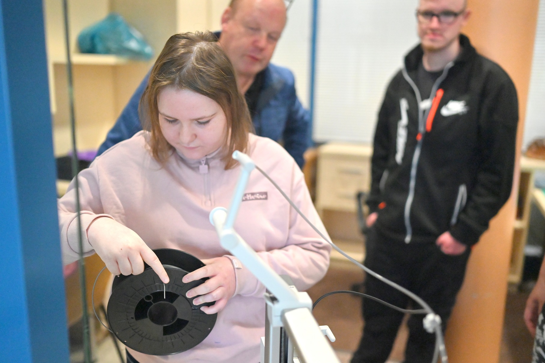 Heute ging die kreative Workshop-Reihe zuende: Beschäftigte lernen unter Anleitung von Herrn Kiesewetter die verschiedensten Kunststoff-Kunstwerke zu drucken. Das Ziel ist die Arbeitsplatzverbesserung – Beschäftigte drucken für Beschäftigte. So können auf Bestellung diverse Hilfsmittel aus Kunststoff hergestellt werden. Die Möglichkeiten sind da. Das Know-How auch. Packen wirs an!
