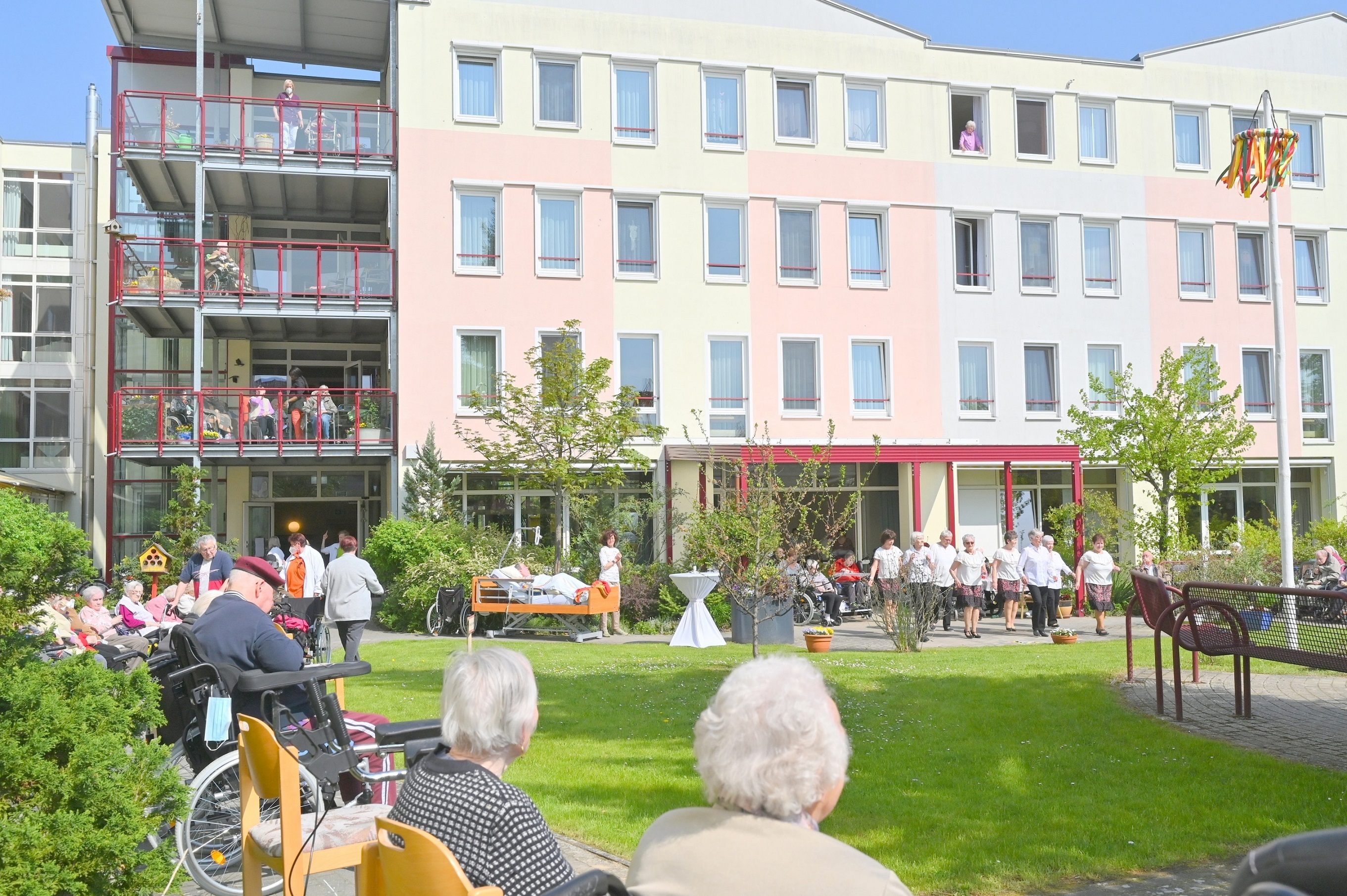 Bei Musik, Tanz und Würstchen wurde am Mittwoch der Maibaum aufgestellt. Er bleibt bis Juli im Innenhof stehen. Begleitet hat das Fest die Neuendorfer Tanzgruppe. Es wurde geschunkelt und geschlemmt.