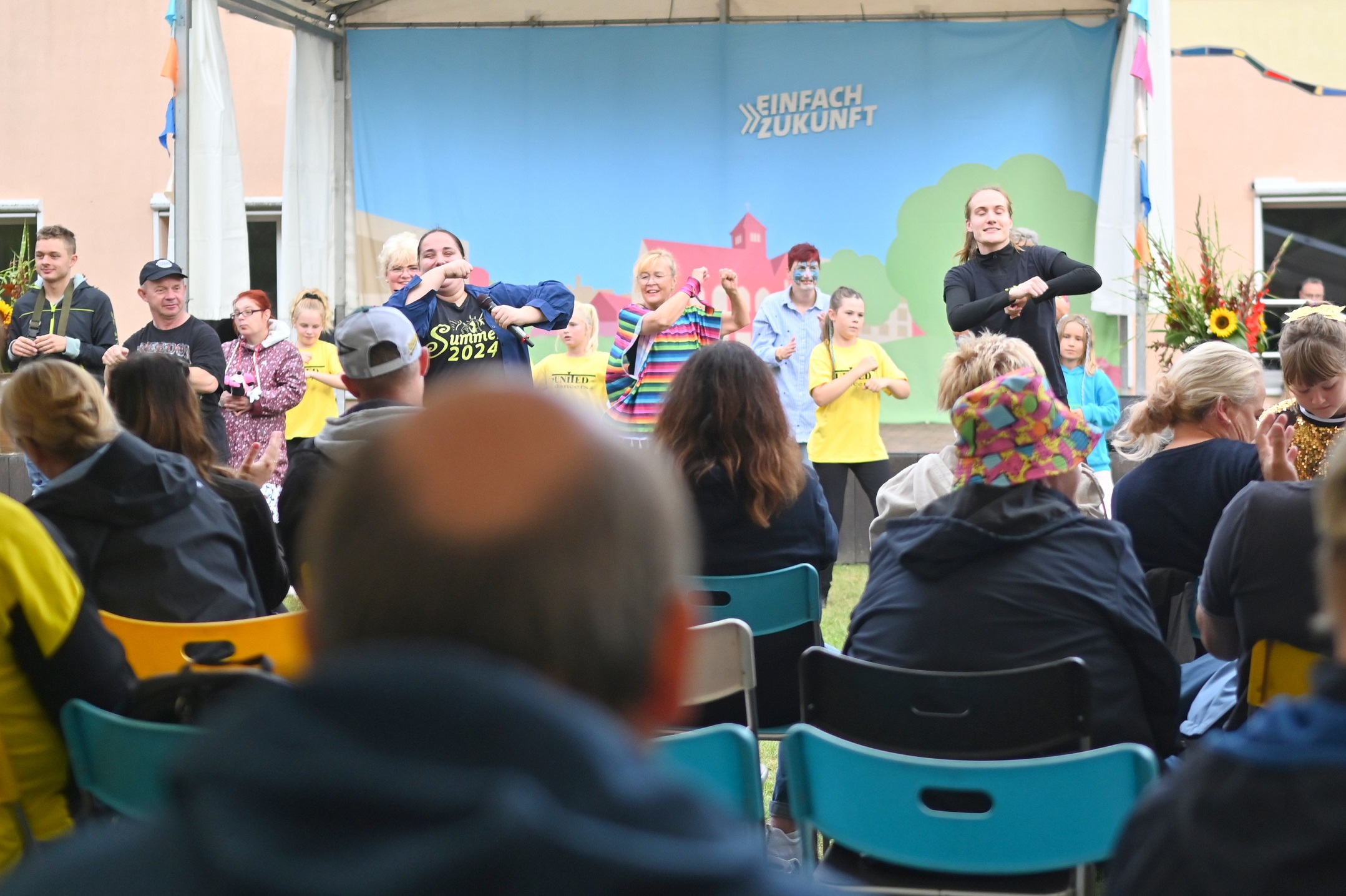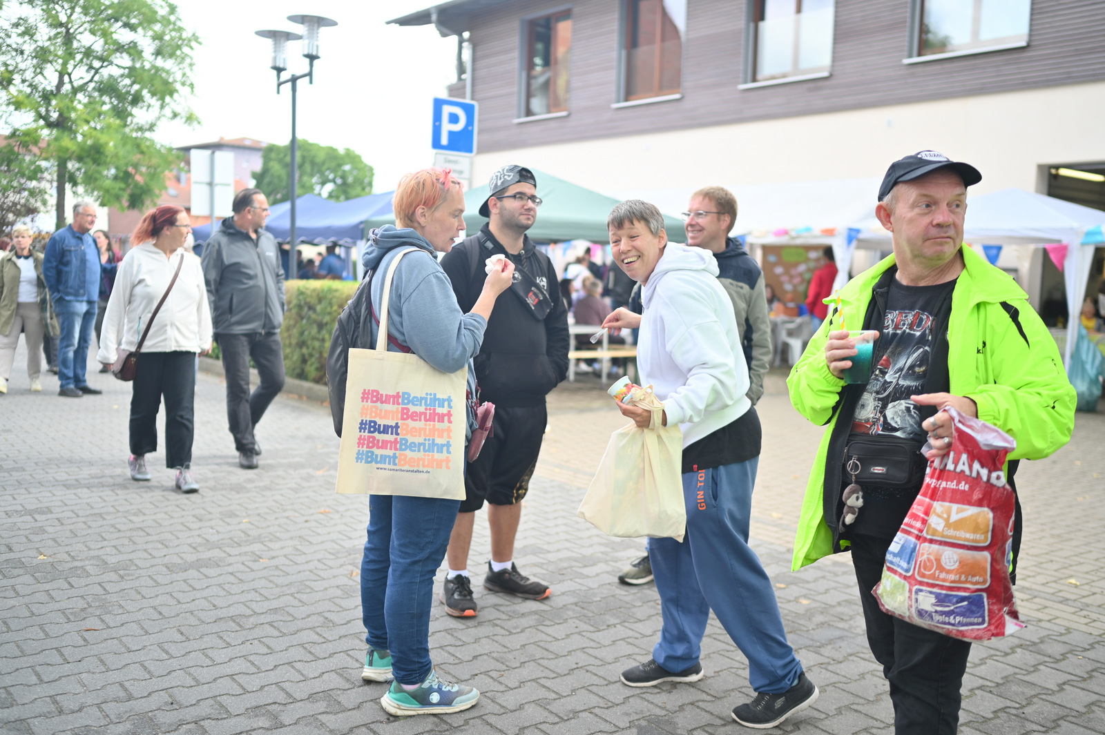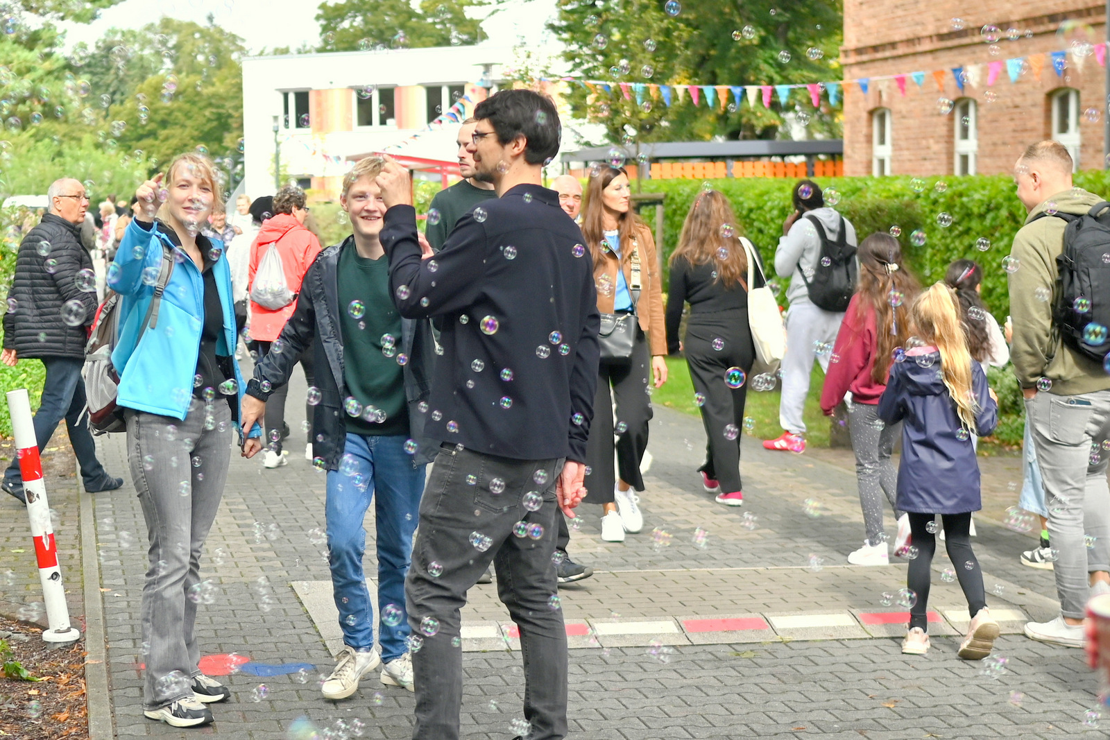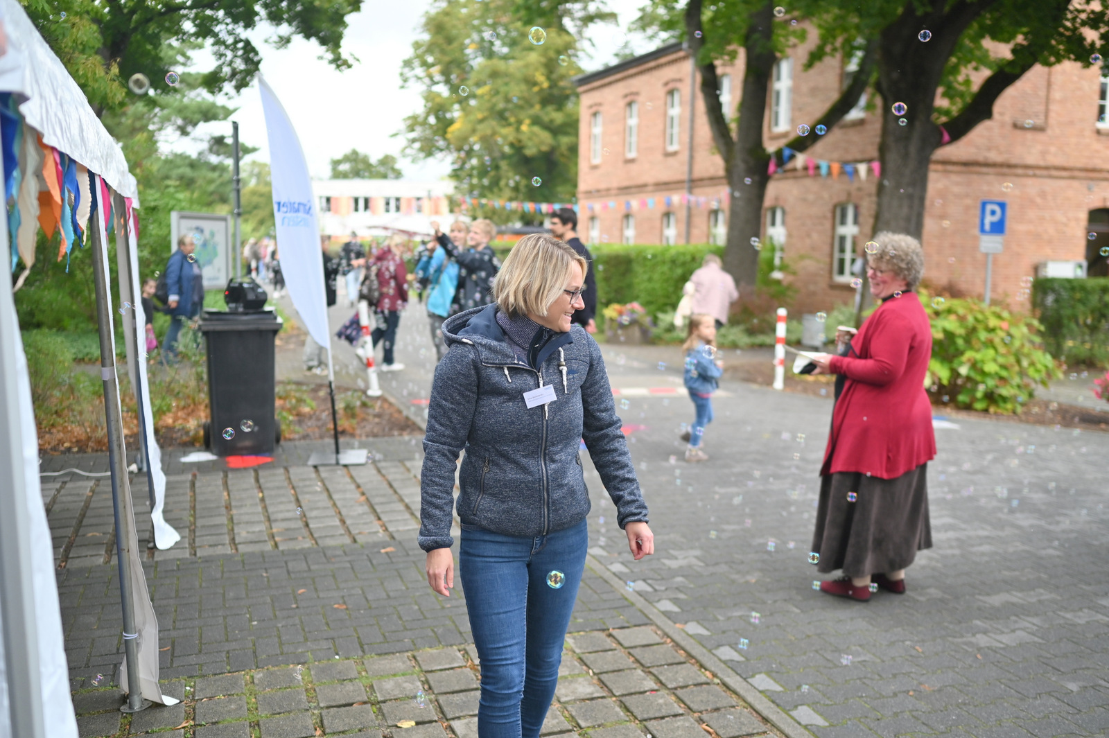 Gegen Mittag begann das bunte Markttreiben. Die Sonne kam heraus und tauchte die rund 50 Stände auf dem Gelände in einen Glitzerzauber: Kinderschminke mit Glitzer-Tattos, Rikschafahrten, Flohmarkt und vieles andere wurde geboten. Rund 1000 Menschen füllten das Gelände. Ein großer Andrang herrschte beim Bürgerbudget-Stand der Stadt Fürstenwalde. Am frühen Nachmittag begeisterte die Rettungshunde-Show der DRK Rettungshundestaffel Märkisch Oder Havel Spree. Wem der Trubel zu viel wurde, konnte sich im Raum der Ruhe, der erstmals liebevoll im Festsaal eingerichtet war, hinlegen und erholen. Zu Herzen ging das Konzert mit Kirchenmusikdirektor Georg Popp an der Orgel der Samariterkirche, die 1975 zum ersten Mal erklang. Zum Abschluss begeisterten die „United Dancers“ auf der Festwiese. Die schwungvollen Tänzerinnen aller Altersstufen brachten auch die Festbesucher in Bewegung. Das war ein Spaß! Nach der Zugabe verstreuten sich viele glückliche Menschen in alle Himmelsrichtungen.