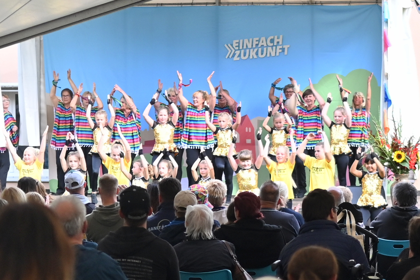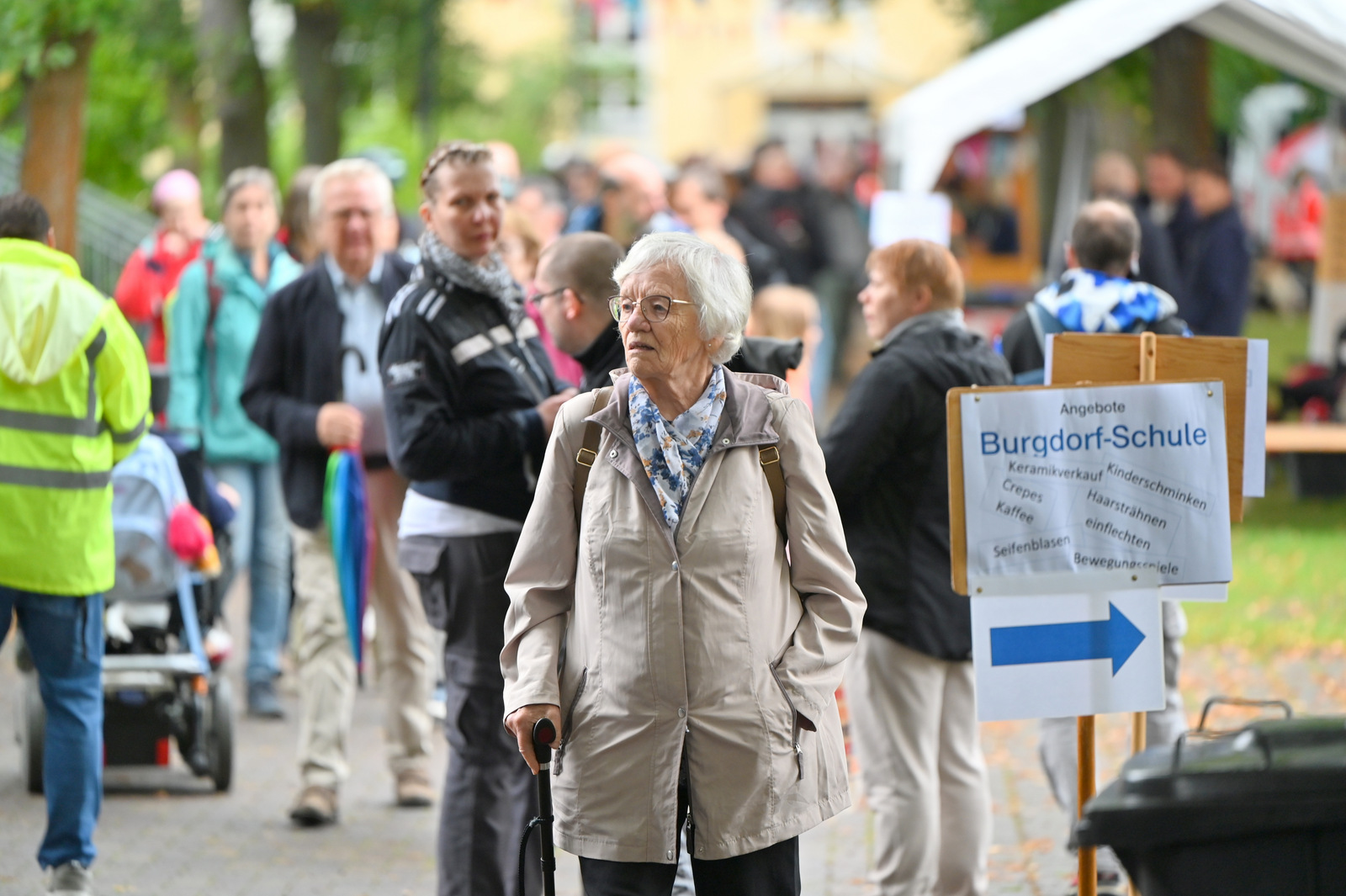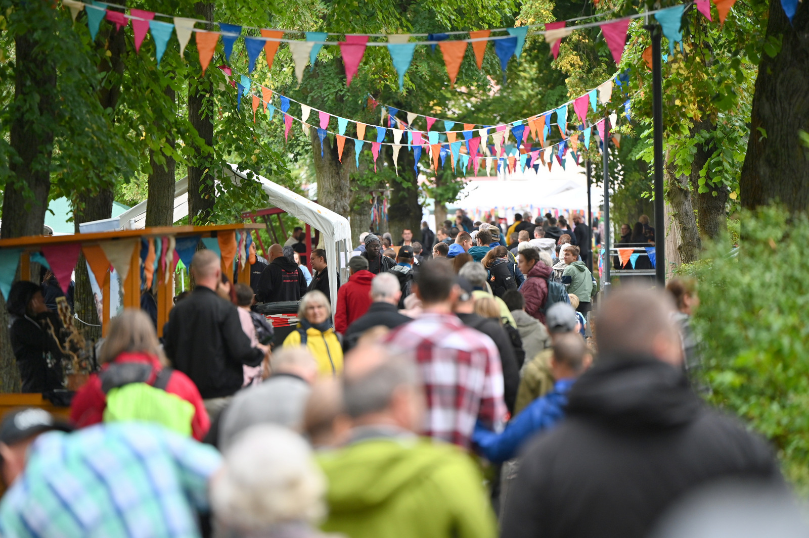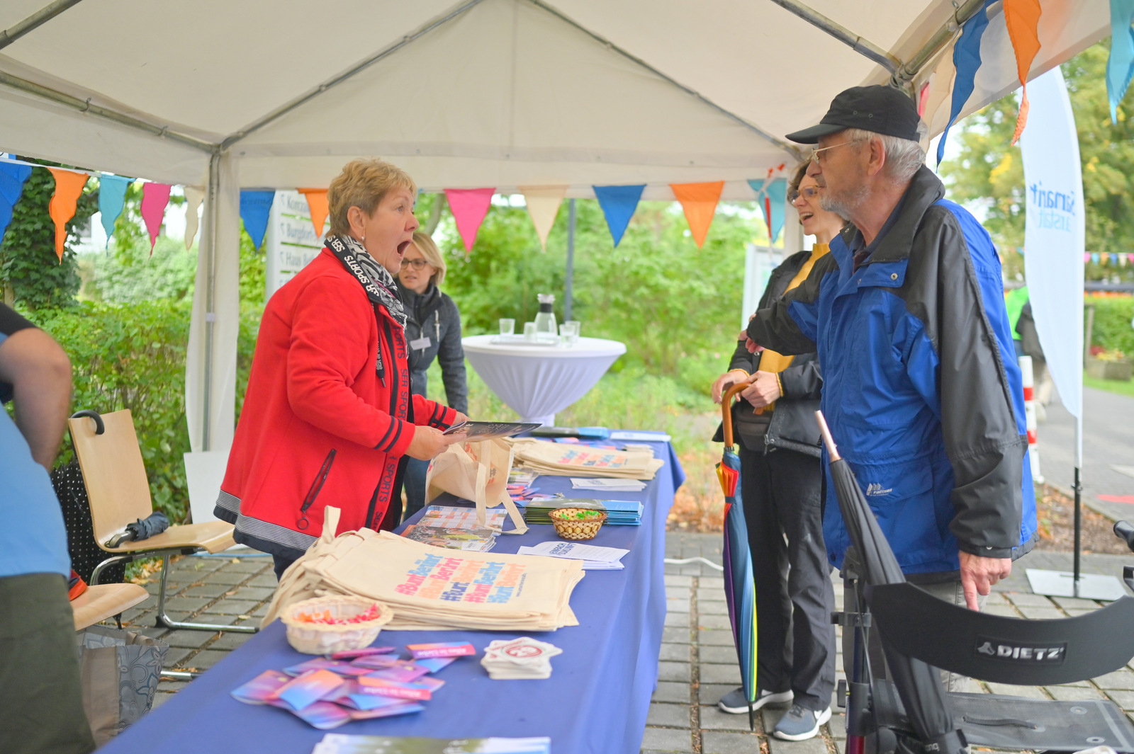 Gegen Mittag begann das bunte Markttreiben. Die Sonne kam heraus und tauchte die rund 50 Stände auf dem Gelände in einen Glitzerzauber: Kinderschminke mit Glitzer-Tattos, Rikschafahrten, Flohmarkt und vieles andere wurde geboten. Rund 1000 Menschen füllten das Gelände. Ein großer Andrang herrschte beim Bürgerbudget-Stand der Stadt Fürstenwalde. Am frühen Nachmittag begeisterte die Rettungshunde-Show der DRK Rettungshundestaffel Märkisch Oder Havel Spree. Wem der Trubel zu viel wurde, konnte sich im Raum der Ruhe, der erstmals liebevoll im Festsaal eingerichtet war, hinlegen und erholen. Zu Herzen ging das Konzert mit Kirchenmusikdirektor Georg Popp an der Orgel der Samariterkirche, die 1975 zum ersten Mal erklang. Zum Abschluss begeisterten die „United Dancers“ auf der Festwiese. Die schwungvollen Tänzerinnen aller Altersstufen brachten auch die Festbesucher in Bewegung. Das war ein Spaß! Nach der Zugabe verstreuten sich viele glückliche Menschen in alle Himmelsrichtungen.