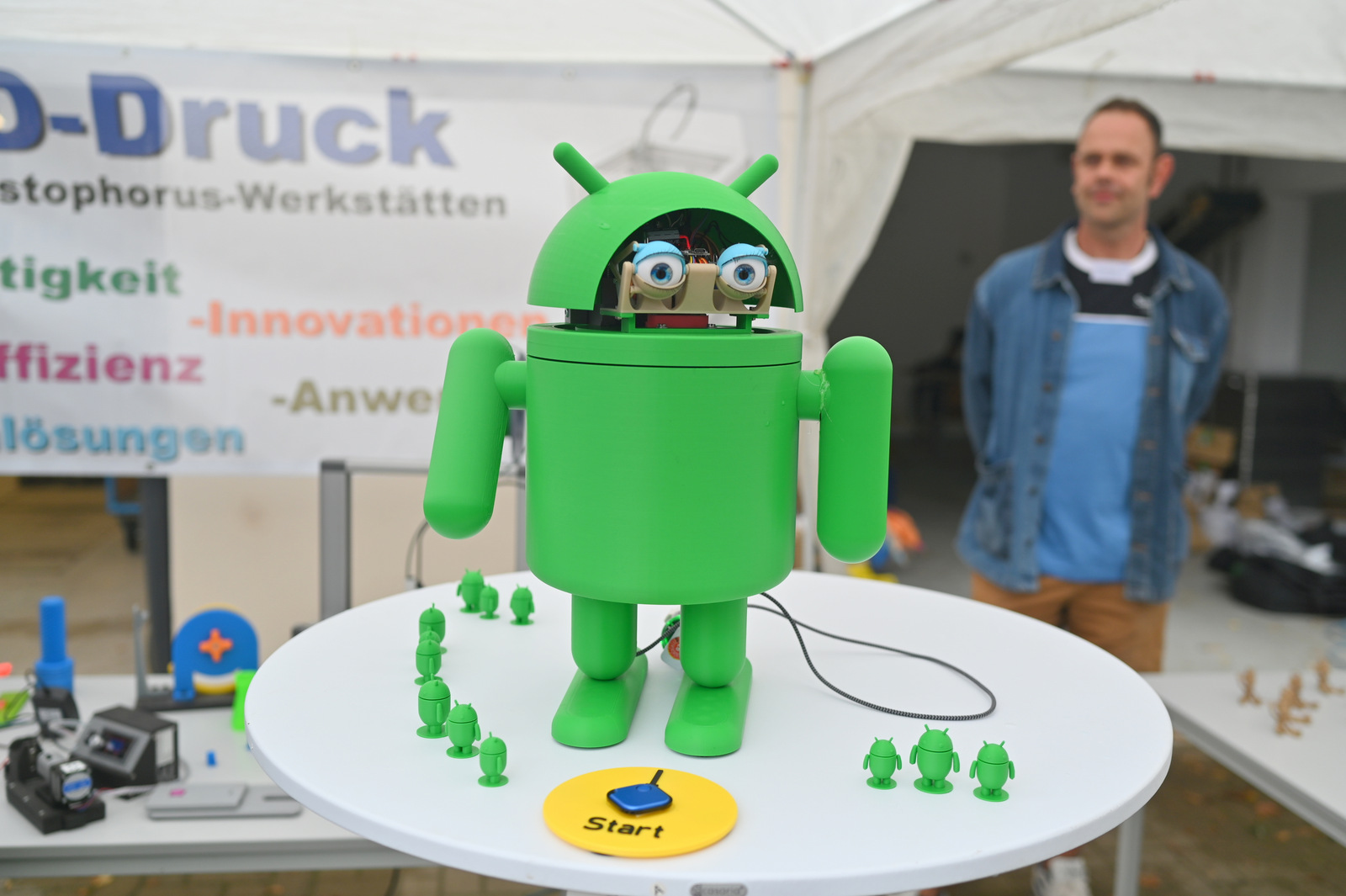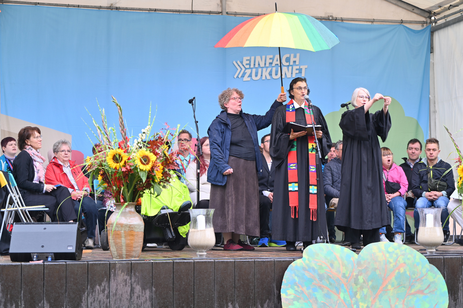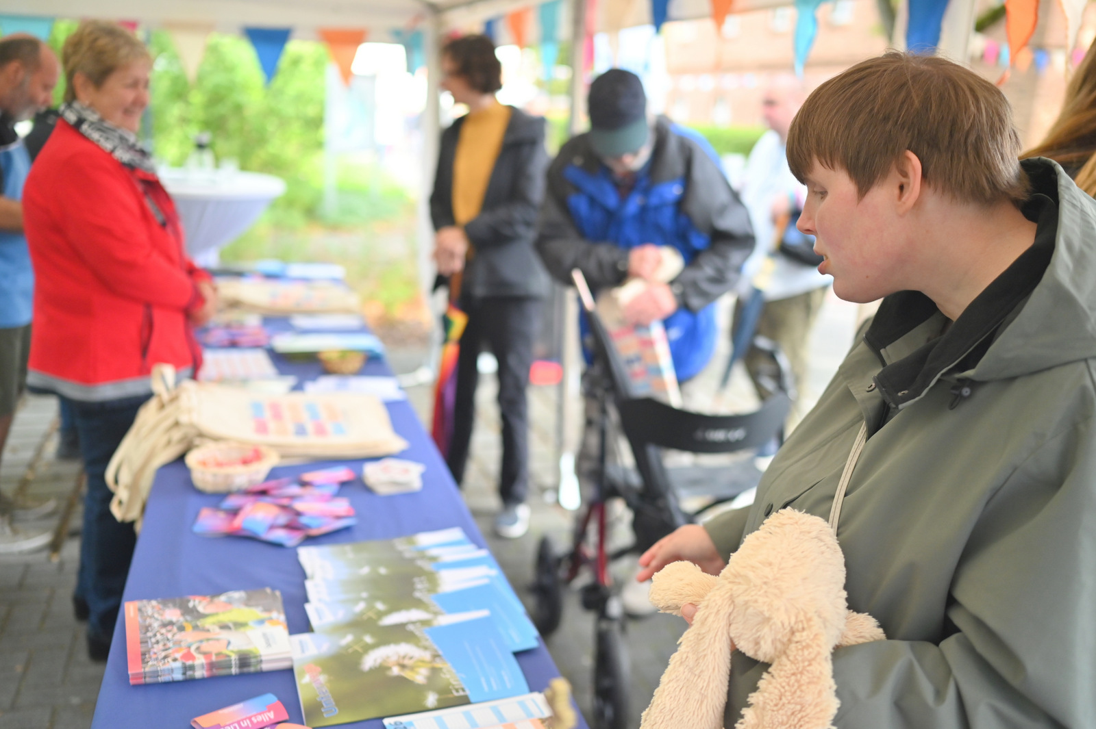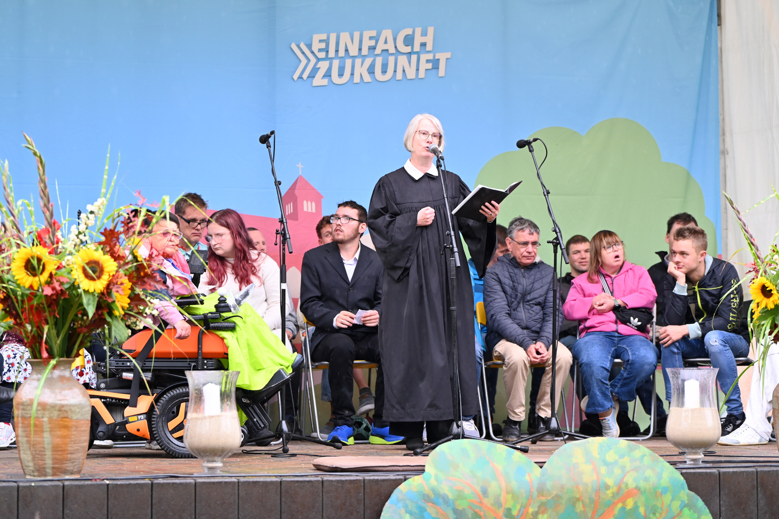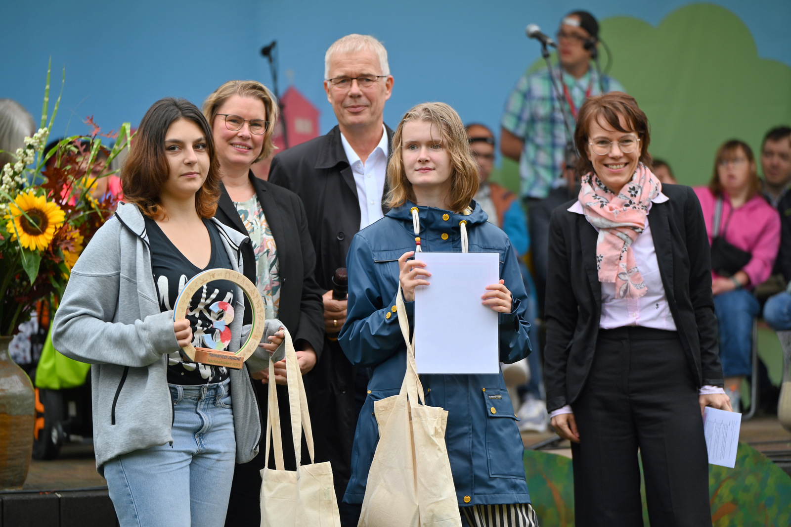 Gegen Mittag begann das bunte Markttreiben. Die Sonne kam heraus und tauchte die rund 50 Stände auf dem Gelände in einen Glitzerzauber: Kinderschminke mit Glitzer-Tattos, Rikschafahrten, Flohmarkt und vieles andere wurde geboten. Rund 1000 Menschen füllten das Gelände. Ein großer Andrang herrschte beim Bürgerbudget-Stand der Stadt Fürstenwalde. Am frühen Nachmittag begeisterte die Rettungshunde-Show der DRK Rettungshundestaffel Märkisch Oder Havel Spree. Wem der Trubel zu viel wurde, konnte sich im Raum der Ruhe, der erstmals liebevoll im Festsaal eingerichtet war, hinlegen und erholen. Zu Herzen ging das Konzert mit Kirchenmusikdirektor Georg Popp an der Orgel der Samariterkirche, die 1975 zum ersten Mal erklang. Zum Abschluss begeisterten die „United Dancers“ auf der Festwiese. Die schwungvollen Tänzerinnen aller Altersstufen brachten auch die Festbesucher in Bewegung. Das war ein Spaß! Nach der Zugabe verstreuten sich viele glückliche Menschen in alle Himmelsrichtungen.
