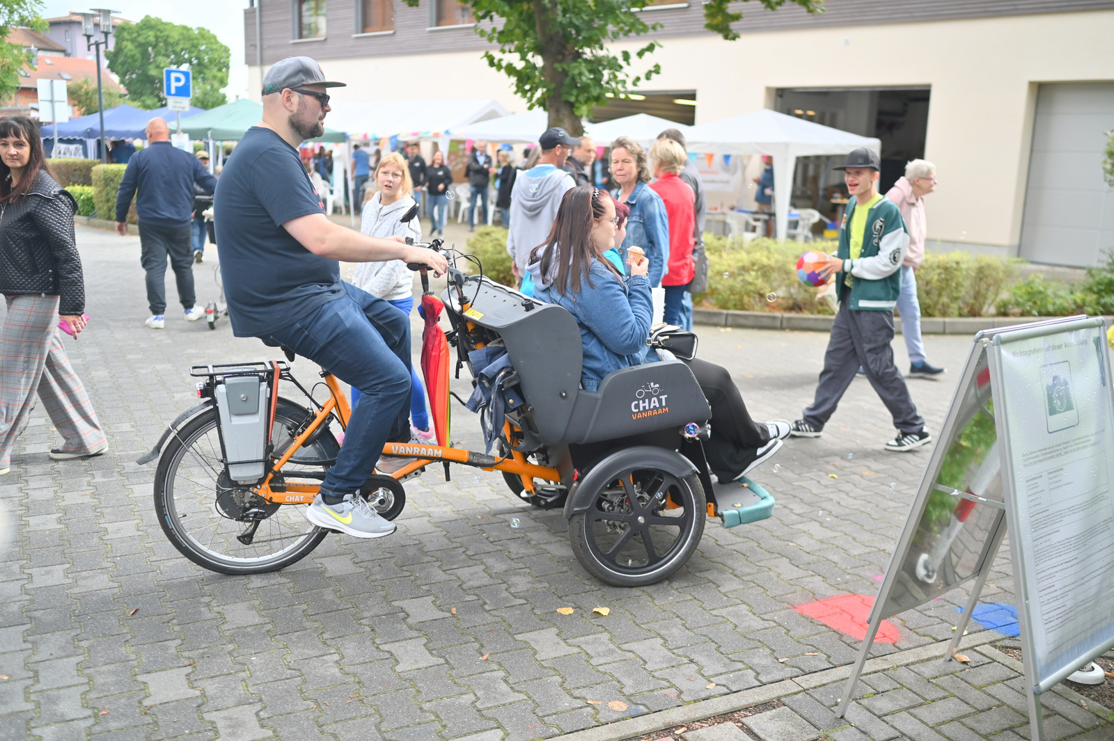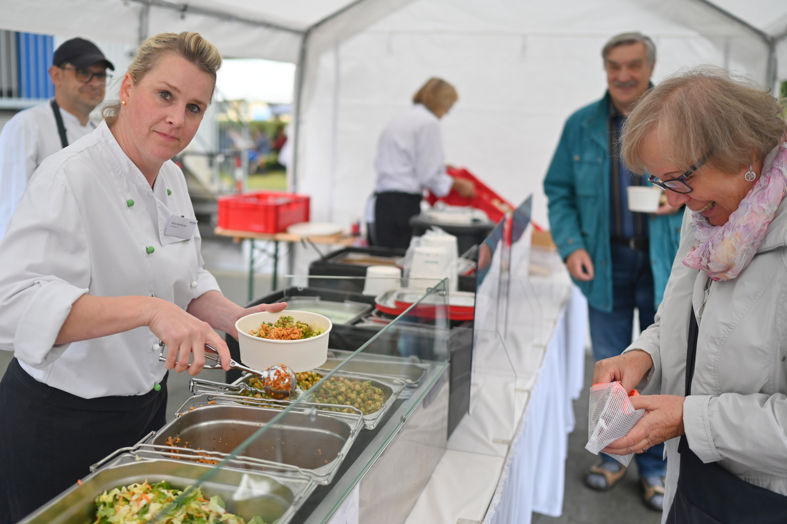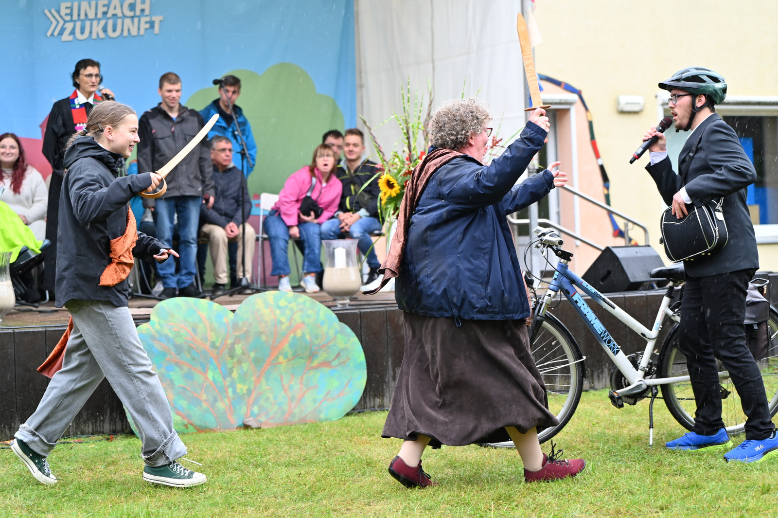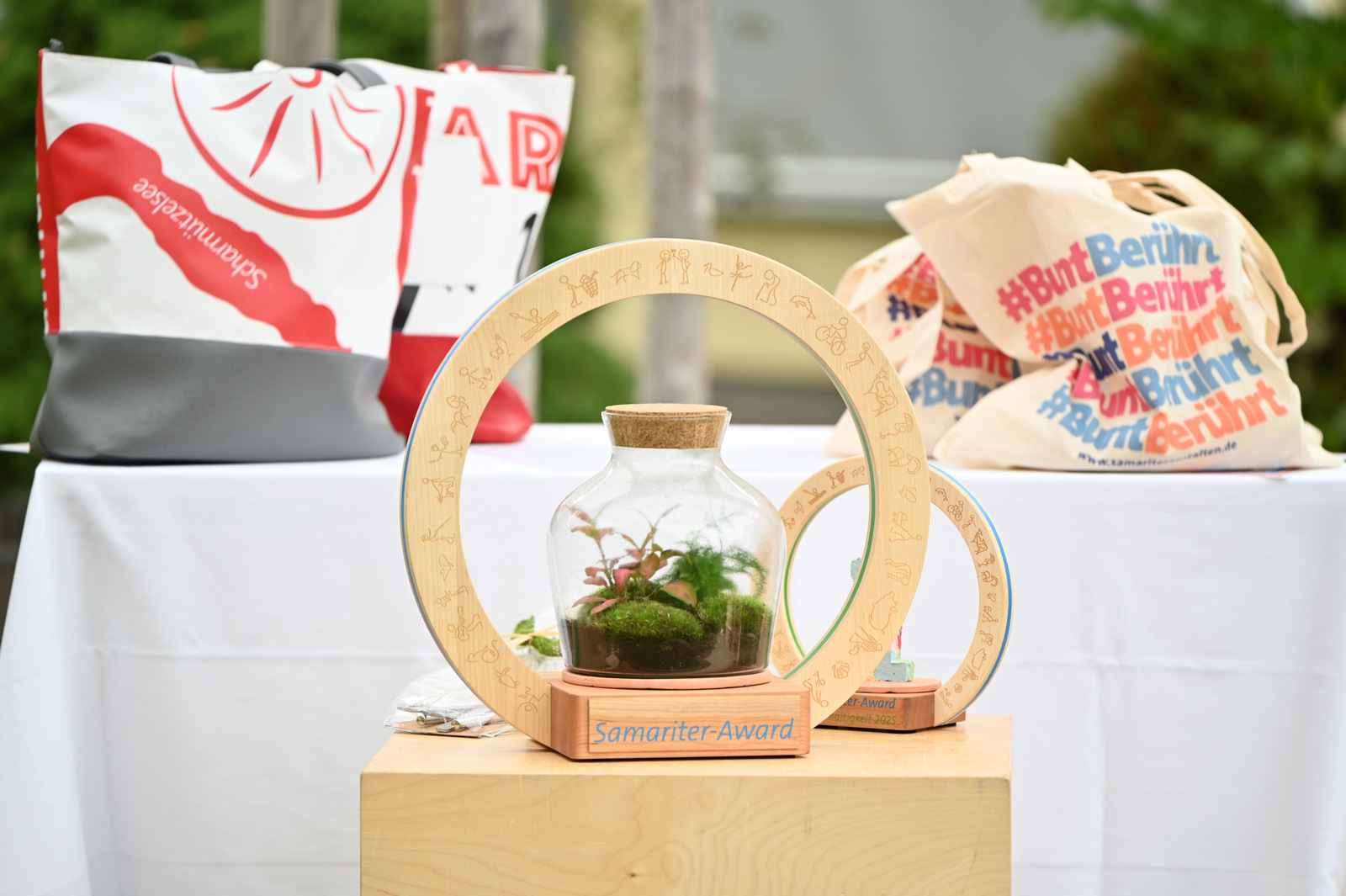 Gegen Mittag begann das bunte Markttreiben. Die Sonne kam heraus und tauchte die rund 50 Stände auf dem Gelände in einen Glitzerzauber: Kinderschminke mit Glitzer-Tattos, Rikschafahrten, Flohmarkt und vieles andere wurde geboten. Rund 1000 Menschen füllten das Gelände. Ein großer Andrang herrschte beim Bürgerbudget-Stand der Stadt Fürstenwalde. Am frühen Nachmittag begeisterte die Rettungshunde-Show der DRK Rettungshundestaffel Märkisch Oder Havel Spree. Wem der Trubel zu viel wurde, konnte sich im Raum der Ruhe, der erstmals liebevoll im Festsaal eingerichtet war, hinlegen und erholen. Zu Herzen ging das Konzert mit Kirchenmusikdirektor Georg Popp an der Orgel der Samariterkirche, die 1975 zum ersten Mal erklang. Zum Abschluss begeisterten die „United Dancers“ auf der Festwiese. Die schwungvollen Tänzerinnen aller Altersstufen brachten auch die Festbesucher in Bewegung. Das war ein Spaß! Nach der Zugabe verstreuten sich viele glückliche Menschen in alle Himmelsrichtungen.